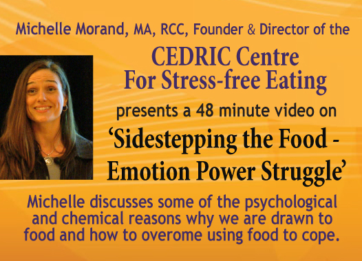 The CEDRIC Centre’s specialized program helps people of all ages to lose or gain weight and to maintain a natural weight for their bodies, for life without diet and rigorous exercise regimes. We teach you how to establish a healthy relationship with food, yourself and others, how to deal with stress, anxiety and depression in ways that boost self-esteem and allow you to feel more secure as you focus less on what you eat and weigh. See intro video for the CEDRIC Centre Mindful Eating Info Package. The CEDRIC team provides counselling in person in British Columbia, Canada, as well via skype and phone worldwide. We offer 3-day Workshops, Hard Copy and Downloadable Resources sold separately or accessed through our Online Program and incude: CD’s; DVD’s; Workbooks; Teleclasses, Lessons, Assignments, a book entiled, ‘Food Is Not The Problem – Deal With What Is’ by CEDRIC Founder and Director Michelle Morand, MA, RCC and more! CEDRIC clients learn everything they need to know about why they struggle with food, what is really triggering the frustrating way they think and behave, and what they can do to achieve lasting change when it comes to food, their approach to relationships, self-esteem, and other areas of their life. Examining the core reasons why we use any less than healthy coping strategies and learning how to deal with stress in a way that is healthy and empowering, not only solves the longstanding issue people have with food, but also addresses the underlying triggers to create true comfort and peace with all aspects of life. We offer in-person counselling in British Columbia in the following cities: Vancouver, Sechelt, Victoria, Kelowna and Whistler. All our counsellors have Master’s Degrees and sessions are $150.00 an hour. If you are interested in having a Personalized Healing Plan created for you, contact Michelle for an assessment of your needs. The plans often combine individual sessions, with a workshop and online program membership for extra support. If you live outside our area, we have achieved results equal to our in-person therapy using internet and phone counselling for over 10 years. The CEDRIC Centre Counselling Team Includes: